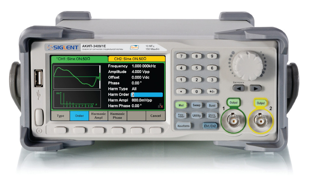 - Формирование выходного сигнала путем задания гармоник (16 макс.);