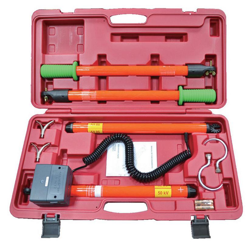 Многофункциональный измеритель высоковольтного напряжения до 50 кВ (AC/DC): входное сопротивление 400 МОм; автоматический выбор диапазона (4 кВ/ 40 кВ/ 50 кВ); индикатор порядка чередования фаз и полярности; соответствует IEC 61243-2 для диапазона от 1 до 36 кВ; класс защиты IP66; ЖК-индикатор с подсветкой. Масса: 1,35 кг.