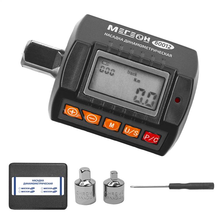 МЕГЕОН 60012 - это цифровая динамометрическая насадка предназначенная для контроля затяжки элементов крепежа в диапазоне 3 ... 30 Нм и разрешением 0,01. Имеет прочный механизм, позволяющий работать по часовой стрелке и против её хода. Имеет компактные размеры, небольшой вес, четыре единицы измерения и два переходника- адаптера. Прибор оборудован звуковой и световой сигнализациями, а также функцией автоматического выключения, которая даёт возможность значительно увеличить срок службы батарей питания. Заменит собой аналогичные механические и цифровые динамометрические ключи. Автоматическое включение подсветки дисплея при появлении нагрузки является преимуществом перед аналогами, а наличие памяти на 999 измерений не оставит никого равнодушным. Инструмент высоко оценят профессионалы и любители.